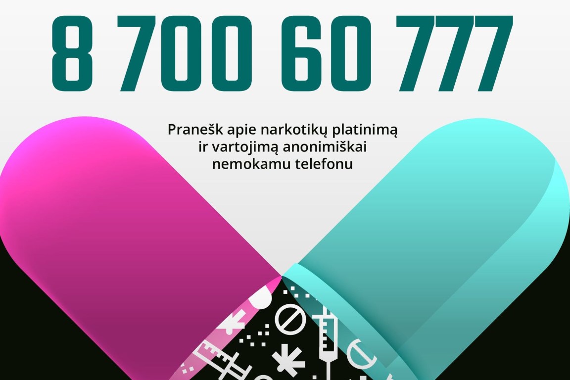 Telefono numeriu 8 700 60 777 galima pranešti apie žinomus narkotikų platinimo atvejus. Telefono linija veikia darbo dienomis nuo 7 val. iki 20 val.